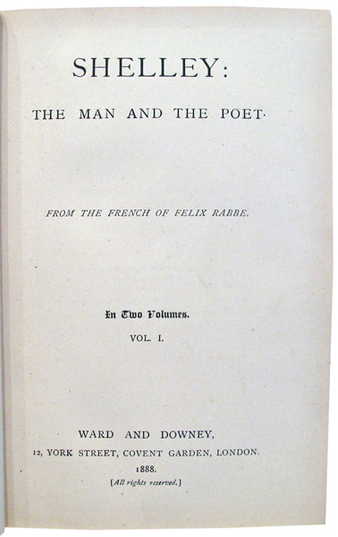 Shelley: The Man and the Poet. From the French of Felix Rabbe London: Ward and Downey, 1888.