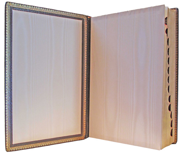 Quarto. 22a, 1221 pp., with one page publisher's ads. Full brown morocco, spine ruled and tooled in gilt and black in compartments with five raised bands and gilt-lettered morocco spine label, covers ruled in black and gilt with decorative gilt corner design, all edges gilt, gilt inner dentelles, silk moiré endpapers. Matching brown morocco slipcase is rubbed but very good. From the library of Loretta Weber, with her name stamped in gilt to slipcase and front cover. A fine copy in a lovely custom binding.