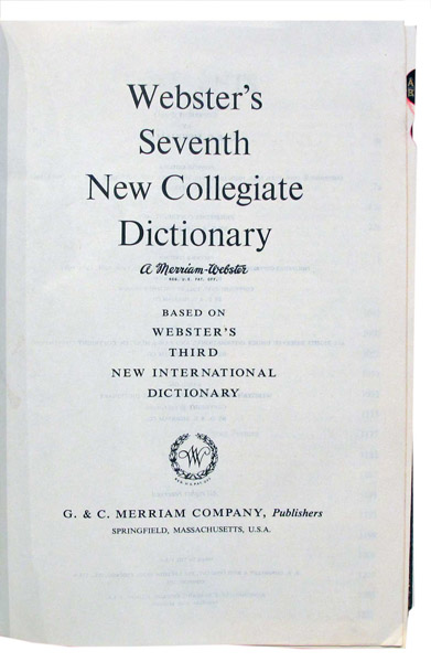Webster's Seventh New Collegiate Dictionary. Based on Webster's Third New International Dictionary Springfield, Massachusetts: G. & C. Merriam Company, [1967].