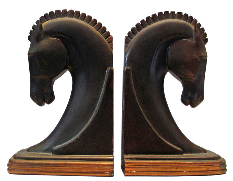 (7 x 4.5 x 3.25"). Just over 6.5 pounds the pair. Gray metal, with a rich bronze patina.