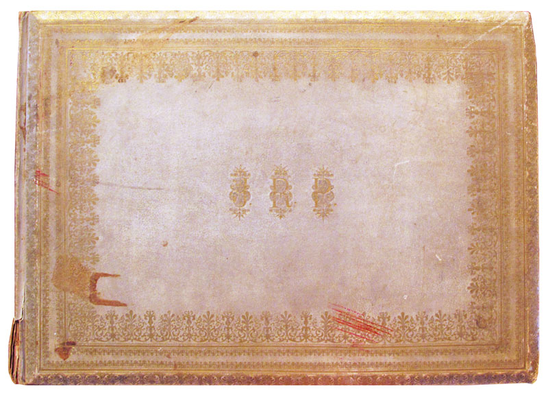 Oblong folio (14.5 x 10.25"). Unpaginated, 94 albumen prints mounted on 48 leaves. Handsomely bound by C. Glingler in elaborately gilt-stamped vellum over beveled boards, front cover monogrammed 'J. R. P.' in gilt, patterned endpapers, all edges stained red. Some soiling and wear to extremities, front joint starting, corners bumped, one leaf detached, a handful partially separating. A good only binding, but photographs are generally fine.