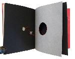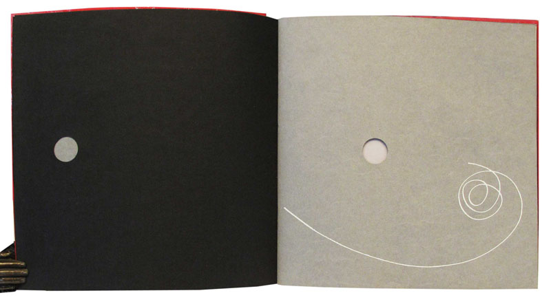 Munari first conceived the 'unreadable book' in 1949, and its first incarnation was exhibited the same year at the Salto Bookshop in Milan. Over the course of his career he has created several variations, in which a "visual discourse, rather than a text composed of words, carries the thread of the story" - in this case literally, as a red thread travels through holes of various sizes across much of the book.
