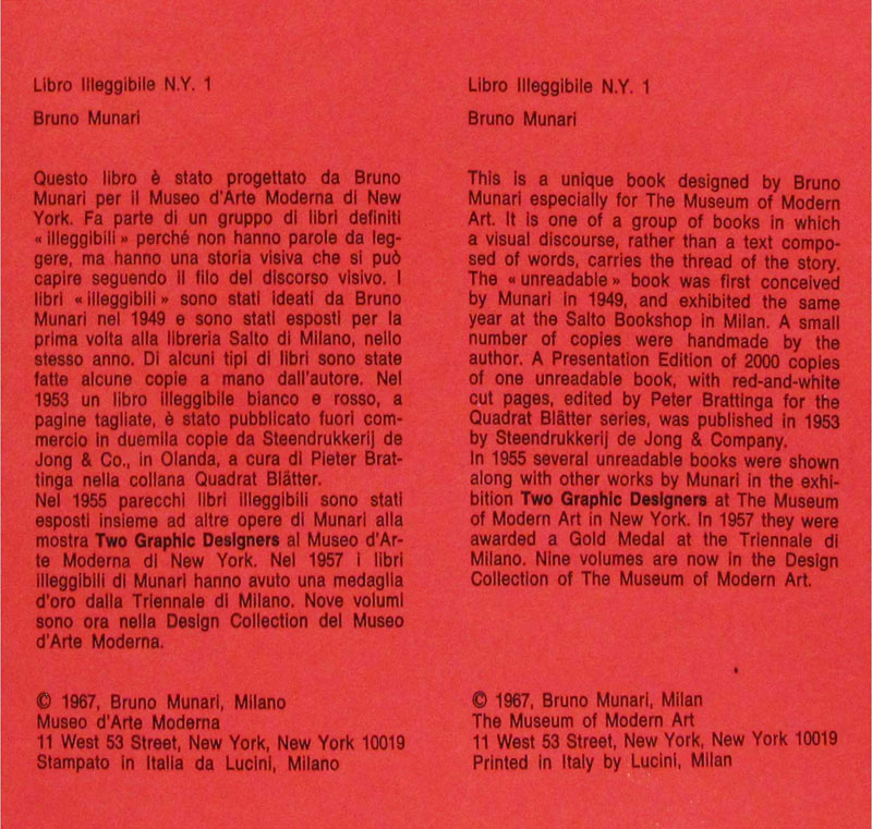 Libro Illeggibile. N. Y. 1 New York: The Museum of Modern Art, 1967.